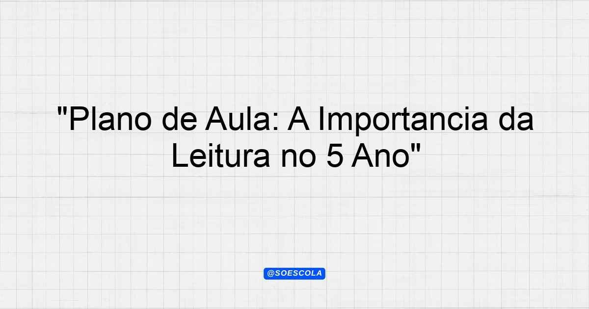 Continue lendoEste plano de aula aborda a importância da leitura no desenvolvimento do aluno do 5º ano do Ensino Fundamental, promovendo