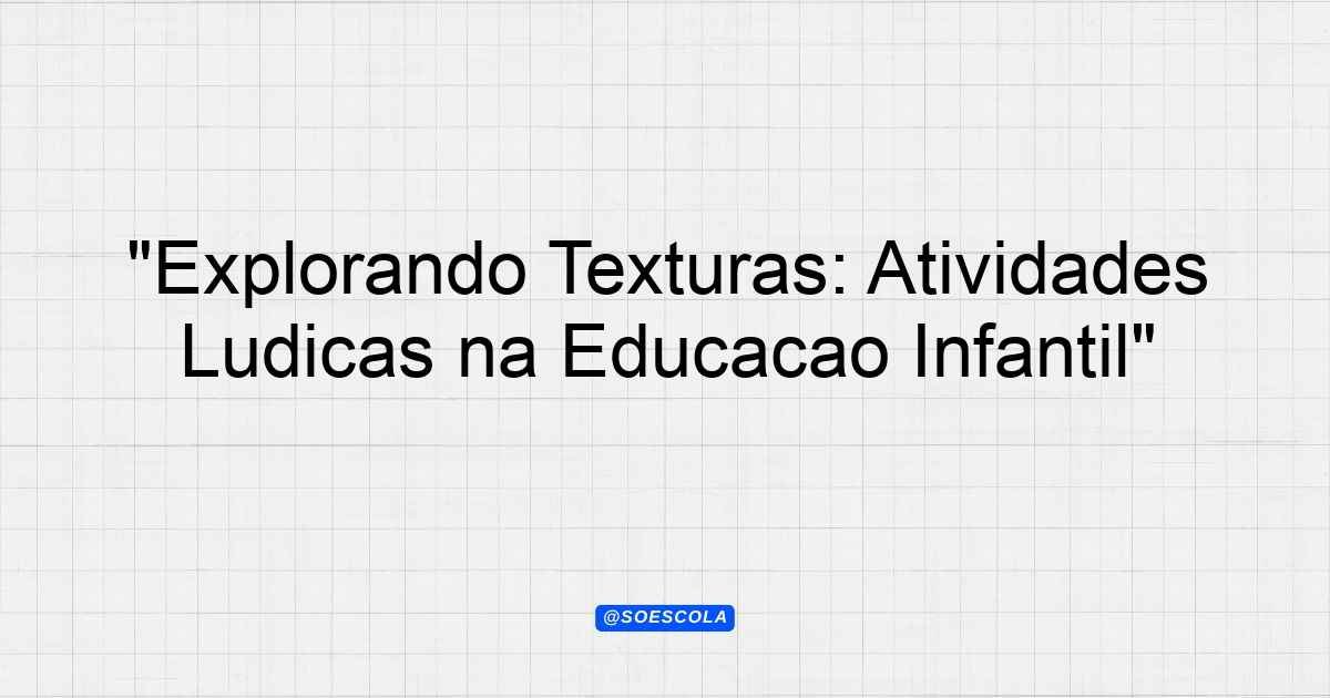 “Explorando Texturas: Atividades Lúdicas na Educação Infantil”