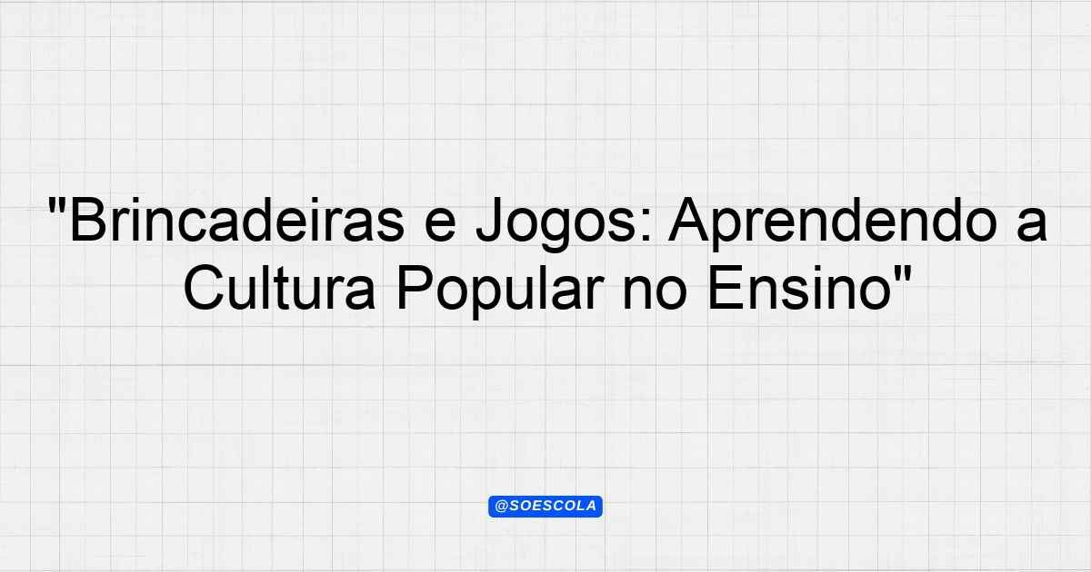Continue lendoA proposta deste plano de aula é explorar de forma lúdica e significativa as brincadeiras e jogos da cultura popular,