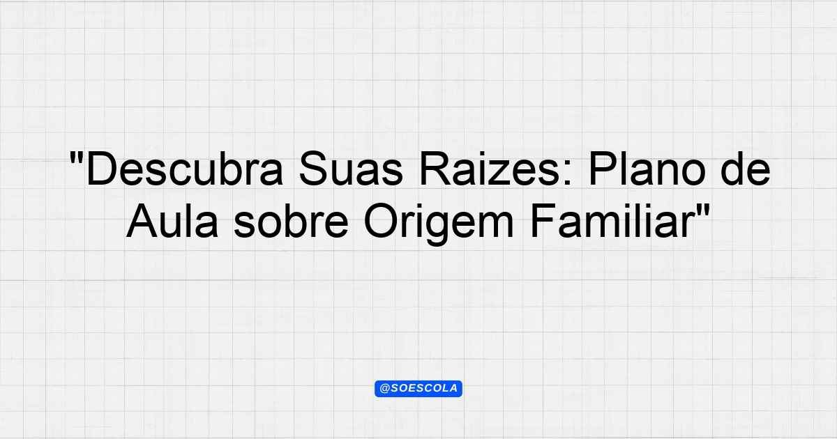 Continue lendoEste plano de aula tem como foco abordagens que visam a compreensão das origens familiares dos alunos, contribuindo para a
