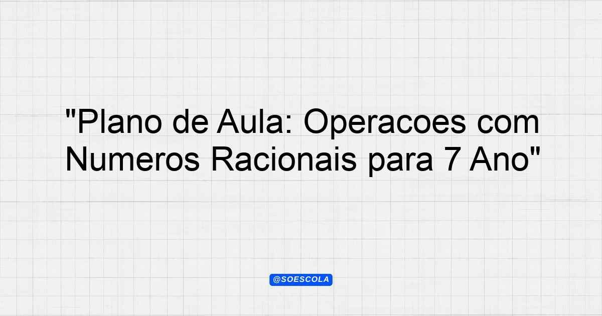 Continue lendoA proposta do plano de aula aborda o tema das Operações com Números Racionais para o 7º ano do Ensino