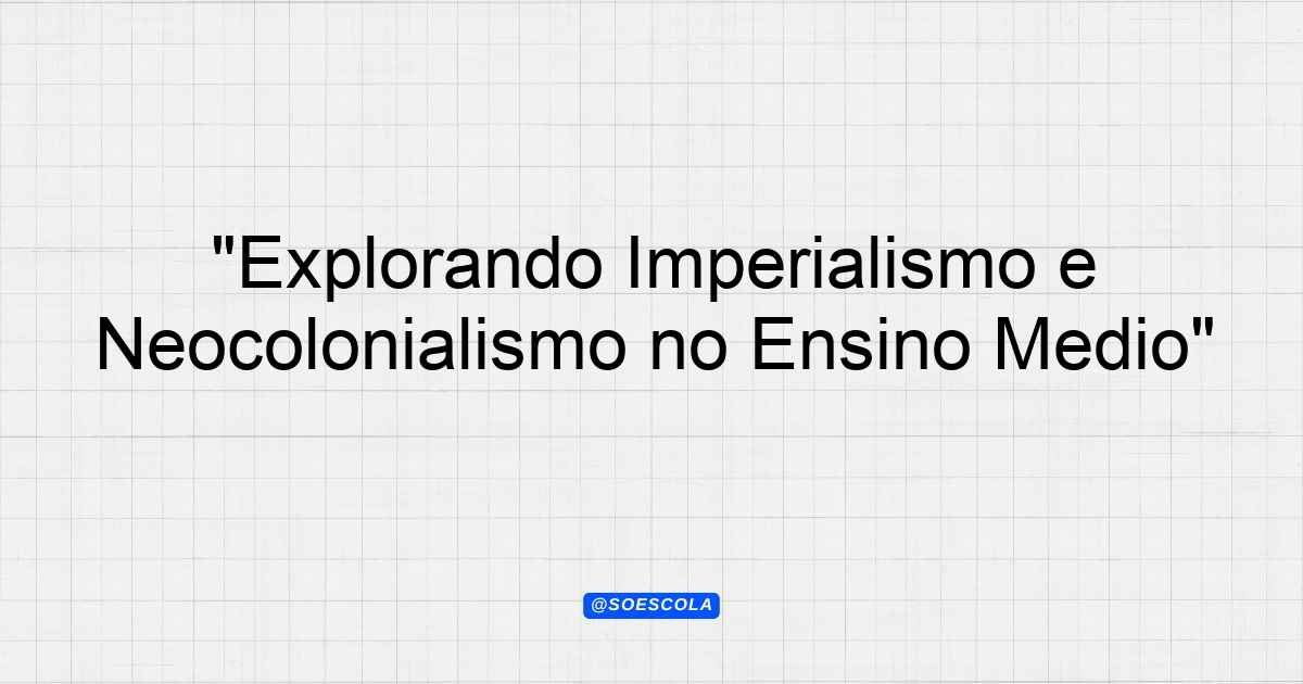 Continue lendoA proposta deste plano de aula é proporcionar uma profunda reflexão sobre o tema do imperialismo e neocolonialismo, um assunto