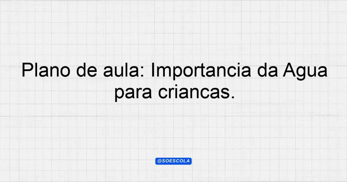 Continue lendoEste plano de aula tem como foco a importância da água, um tema fundamental para a conscientização e educação ambiental