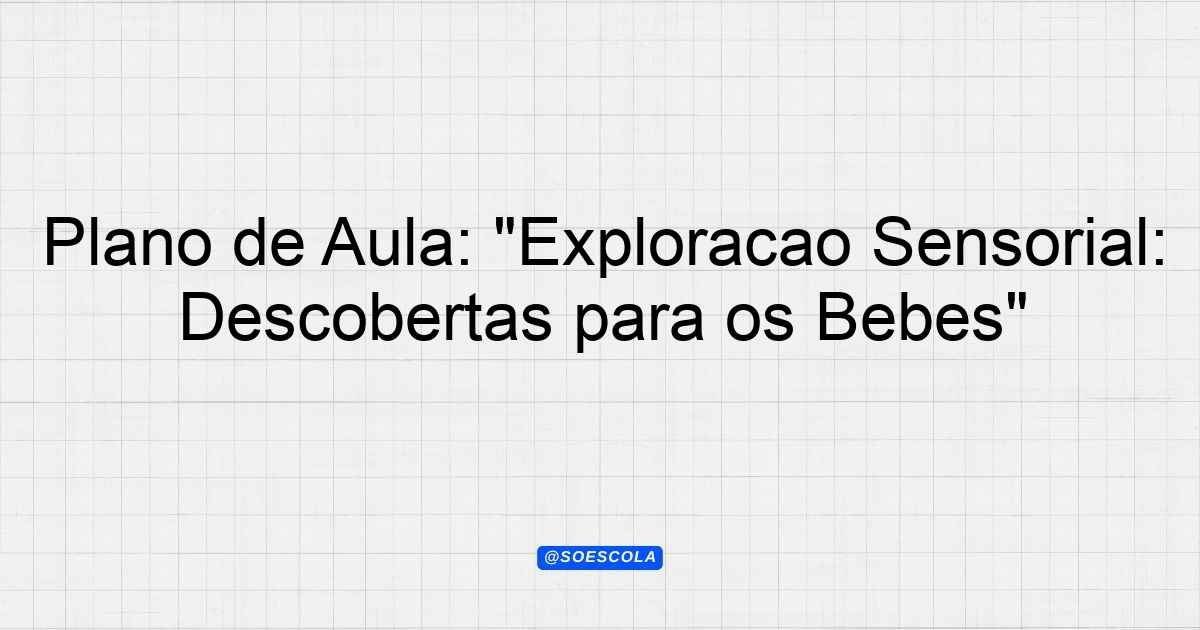 Continue lendoA proposta deste plano de aula é proporcionar uma experiência rica e envolvente em atividades sensoriais para *bebês de 4