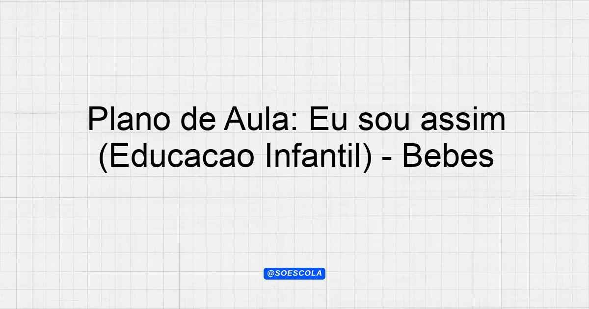 Plano de Aula: Eu sou assim (Educação Infantil) – Bebês