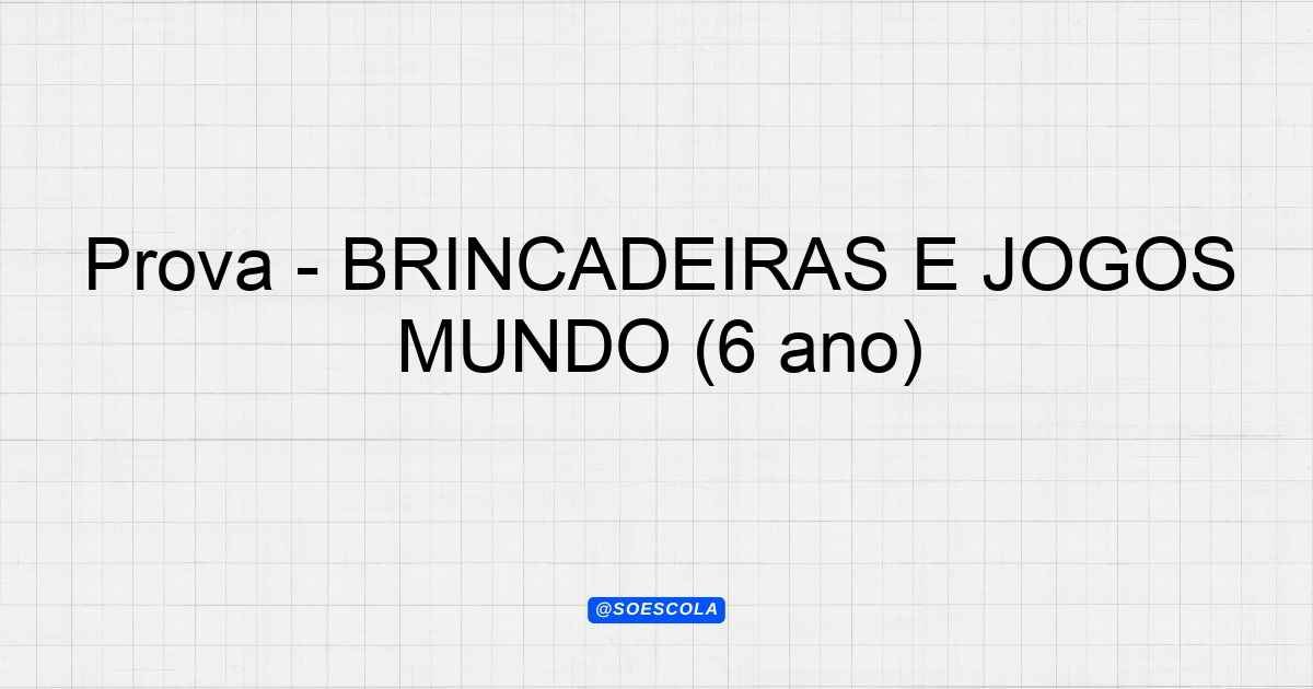 Continue lendoTema: BRINCADEIRAS E JOGOS POPULARES DO BRASIL E DO MUNDOEtapa/Série: 6º anoDisciplina: EDUCAÇÃO FISICAQuestões: 10 Prova de Educação Física Tema: