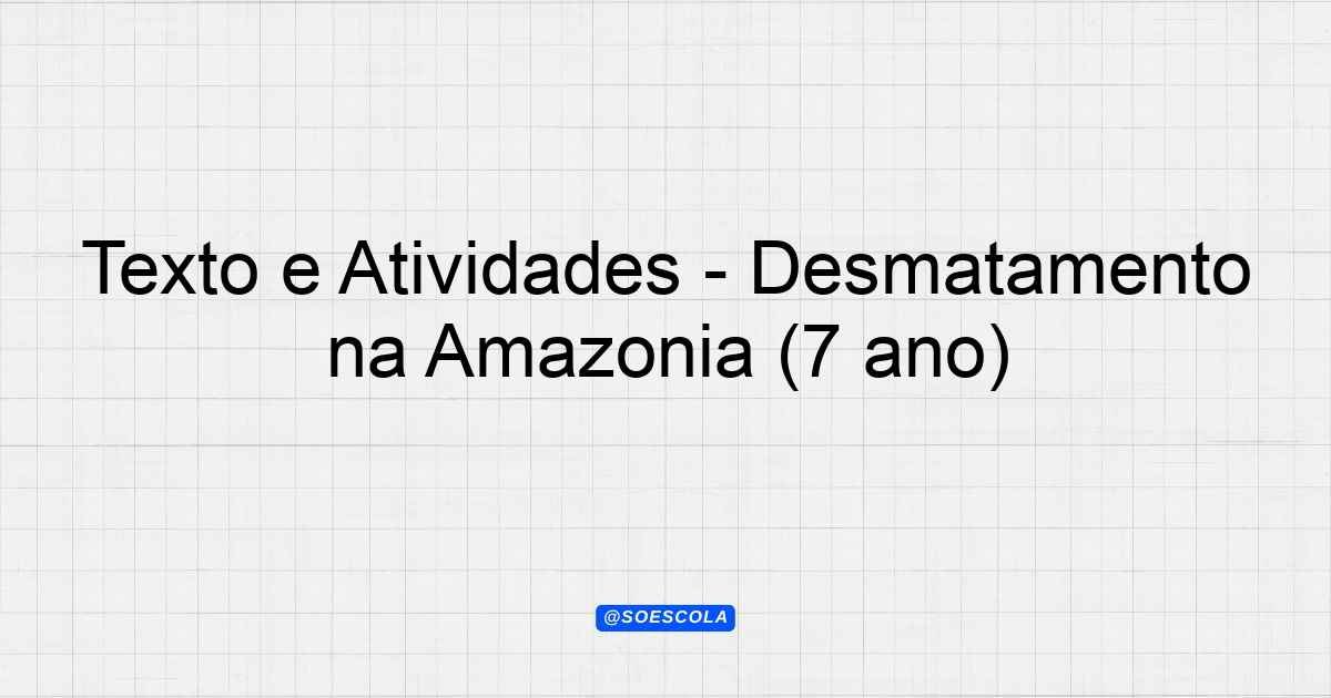 Continue lendoNesta postagem vamos disponibilizar um texto e atividades para trabalhar com alunos do 7º ano na disciplina Geografia. Tema: Desmatamento