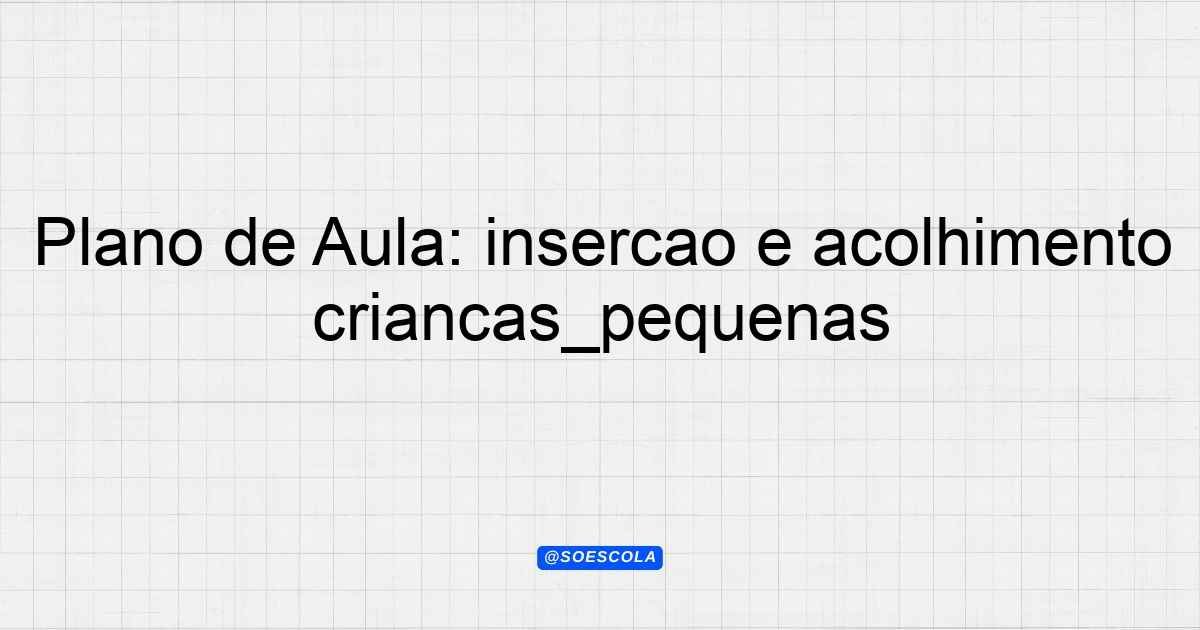 Continue lendoA elaboração deste plano de aula tem como propósito fundamental a inserção e acolhimento de crianças pequenas no ambiente escolar