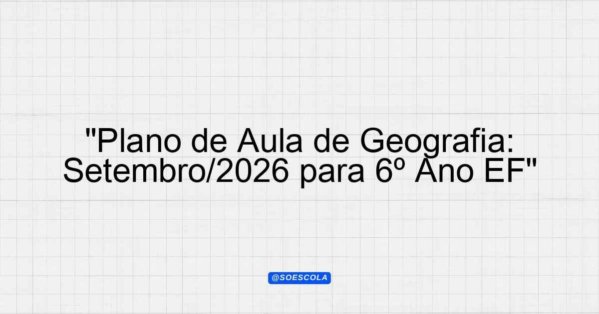 Continue lendoPlano de Aula Mensal – Setembro/2026 📚 Disciplina: Geografia 🎓 Série/Ano: 6º ano EF ⏰ Carga Horária: 2 aulas 📅