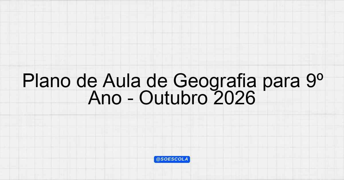 Continue lendoPlano de Aula Mensal – Outubro/2026 📚 Disciplina: Geografia 🎓 Série/Ano: 9º ano EF 📅 Data de Criação: 12/01/2026 Plano
