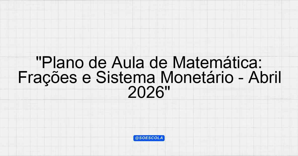 Continue lendoPlano de Aula Mensal – Abril/2026 📚 Disciplina: Matemática 🎓 Série/Ano: 4º ano EF 👥 Turma: educação jovens adultos ⏰