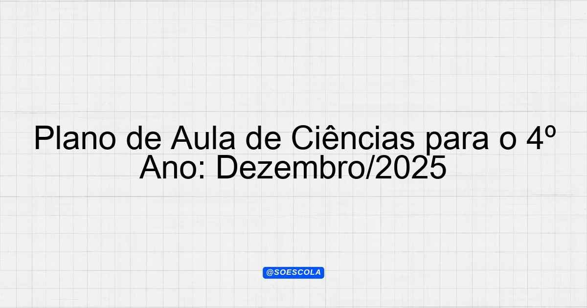 Continue lendoPlano de Aula Mensal – Dezembro/2025 📚 Disciplina: Ciências 🎓 Série/Ano: 4º ano EF 👥 Turma: UNICA ⏰ Carga Horária: