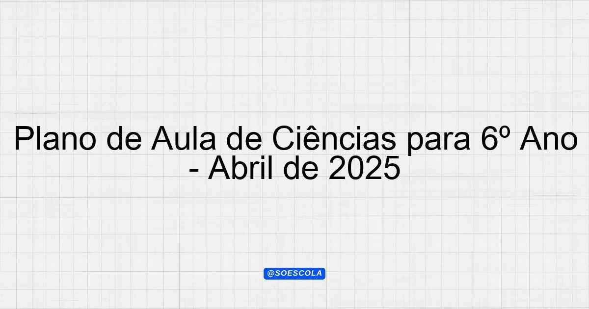 Continue lendoPlano de Aula Mensal – Abril/2025 📚 Disciplina: Ciências 🎓 Série/Ano: 6º ano EF ⏰ Carga Horária: 3 aulas 📅