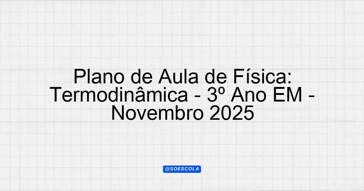 Continue lendoPlano de Aula Mensal – Novembro/2025 📚 Disciplina: Física 🎓 Série/Ano: 3º ano EM ⏰ Carga Horária: 2 aulas 📅
