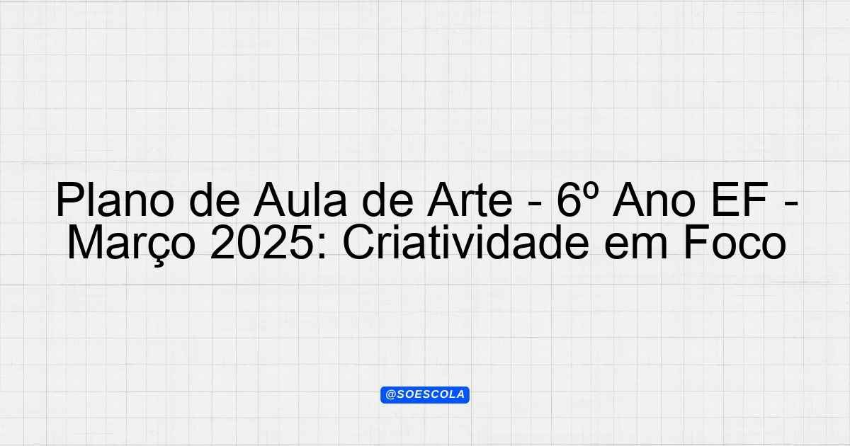 Continue lendoPlano de Aula Mensal – Março/2025 📚 Disciplina: Arte 🎓 Série/Ano: 6º ano EF 👥 Turma: Única ⏰ Carga Horária: