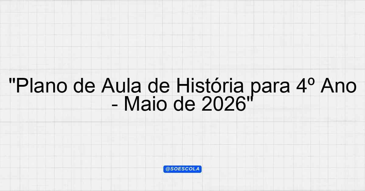 Continue lendoPlano de Aula Mensal – Maio/2026 📚 Disciplina: História 🎓 Série/Ano: 4º ano EF 👥 Turma: educação jovens adultos ⏰