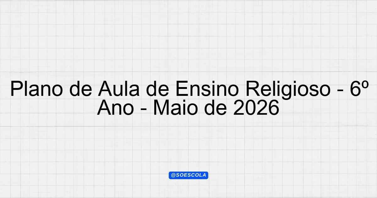 Continue lendoPlano de Aula Mensal – Maio/2026 📚 Disciplina: Ensino Religioso 🎓 Série/Ano: 6º ano EF 👥 Turma: educação jovens adultos
