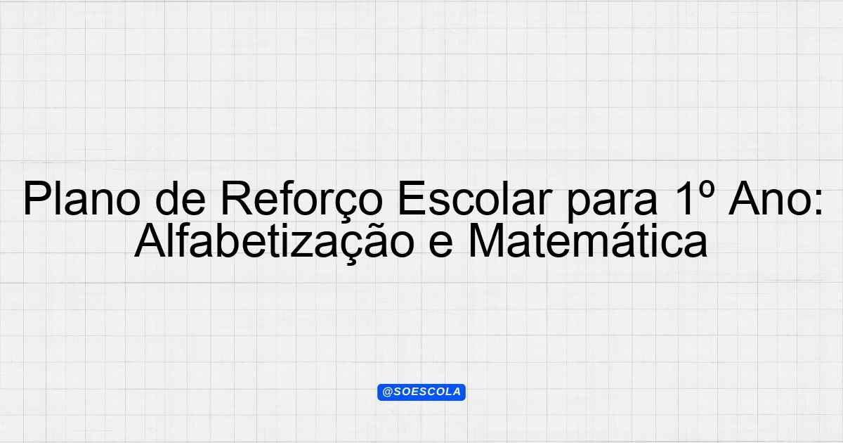 Continue lendoPlano de Reforço Escolar – 1º ano EF 🎓 Série/Ano: 1º ano EF 📚 Disciplinas: Alfabetização, Língua Portuguesa, Matemática ⚠️