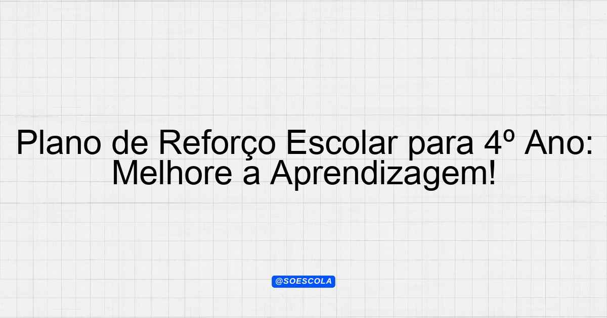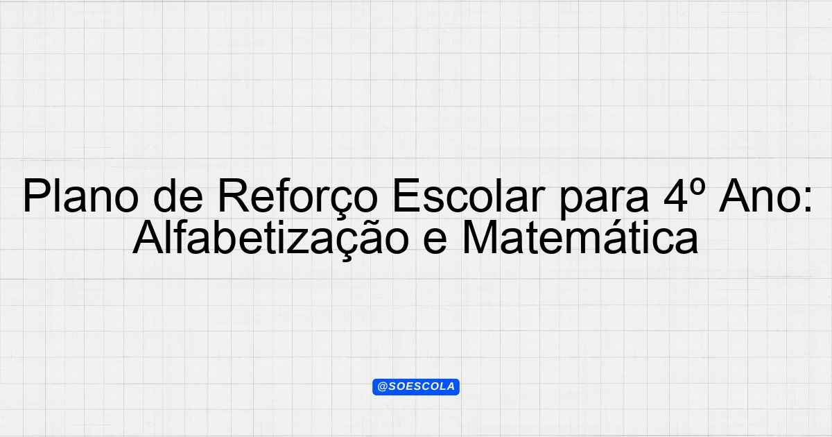 Continue lendoPlano de Reforço Escolar – 4º ano EF 🎓 Série/Ano: 4º ano EF 📚 Disciplinas: Alfabetização, Língua Portuguesa, Matemática ⚠️