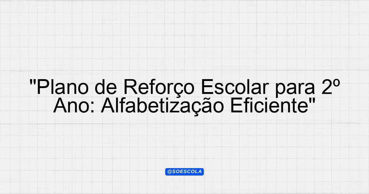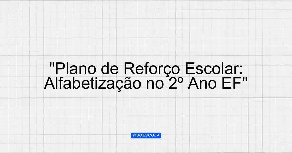 Plano de Reforço Escolar: Melhore a Alfabetização no 2º Ano!