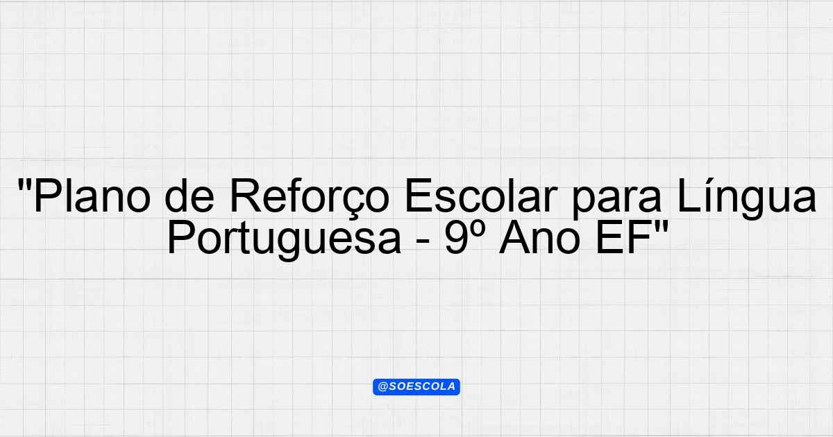 Continue lendoPlano de Reforço Escolar – 9º ano EF 🎓 Série/Ano: 9º ano EF 📚 Disciplinas: Língua Portuguesa ⚠️ Nível de