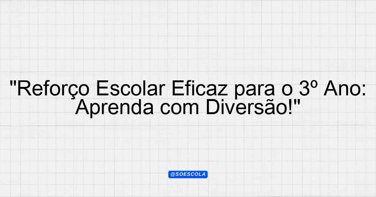 Continue lendoPlano de Reforço Escolar – 3º ano EF 🎓 Série/Ano: 3º ano EF 📚 Disciplinas: Alfabetização, Língua Portuguesa, Matemática ⚠️