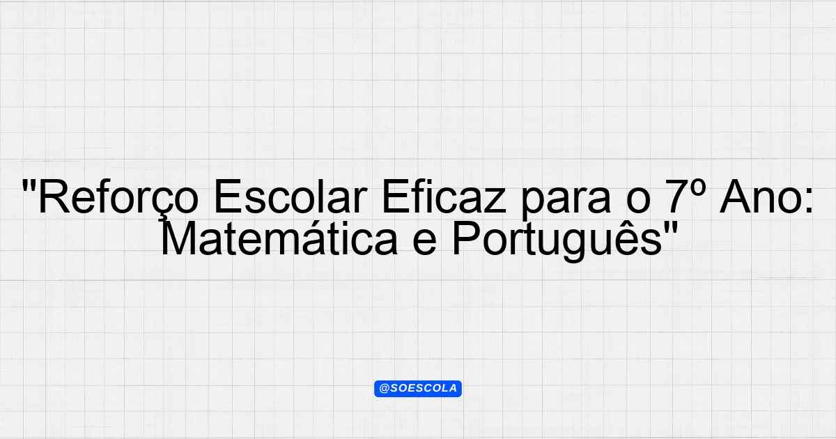 Continue lendoPlano de Reforço Escolar – 7º ano EF 🎓 Série/Ano: 7º ano EF 📚 Disciplinas: Língua Portuguesa, Produção Textual, Matemática