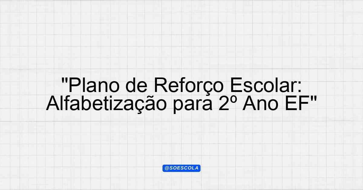 Continue lendoPlano de Reforço Escolar – 2º ano EF 🎓 Série/Ano: 2º ano EF 📚 Disciplinas: Alfabetização, Língua Portuguesa ⚠️ Nível