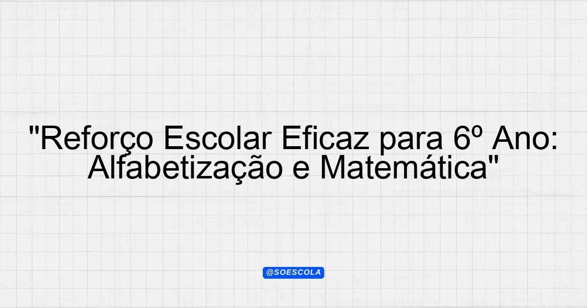 Continue lendoPlano de Reforço Escolar – 6º ano EF 🎓 Série/Ano: 6º ano EF 📚 Disciplinas: Alfabetização, Língua Portuguesa, Matemática ⚠️