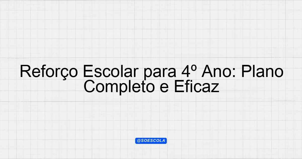 Reforço Escolar para 4º Ano: Plano Completo e Eficaz