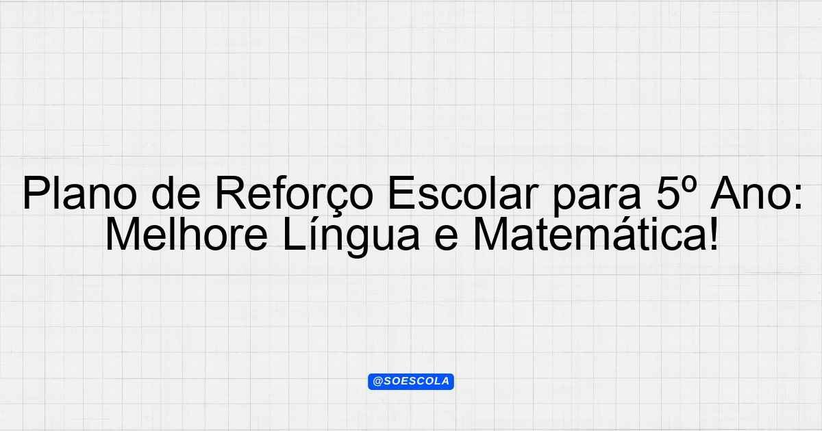 Continue lendoPlano de Reforço Escolar – 5º ano EF 🎓 Série/Ano: 5º ano EF 📚 Disciplinas: Alfabetização, Língua Portuguesa, Matemática ⚠️