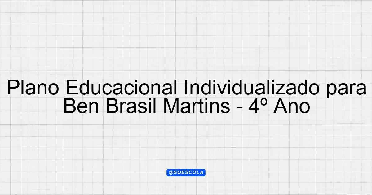 Continue lendoPEI – Plano Educacional Individualizado – Ben Brasil Martins 👤 Aluno: Ben Brasil Martins 🎓 Série/Ano: 4º ano EF 📅