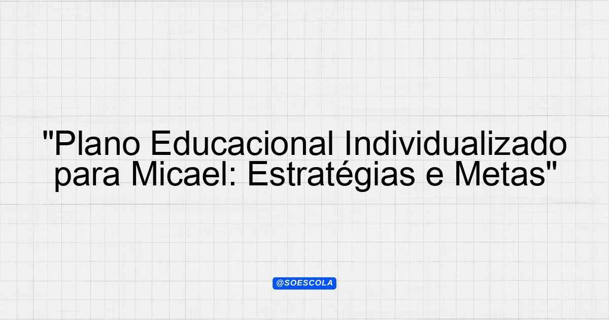“Plano Educacional Individualizado para Micael: Estratégias e Metas”