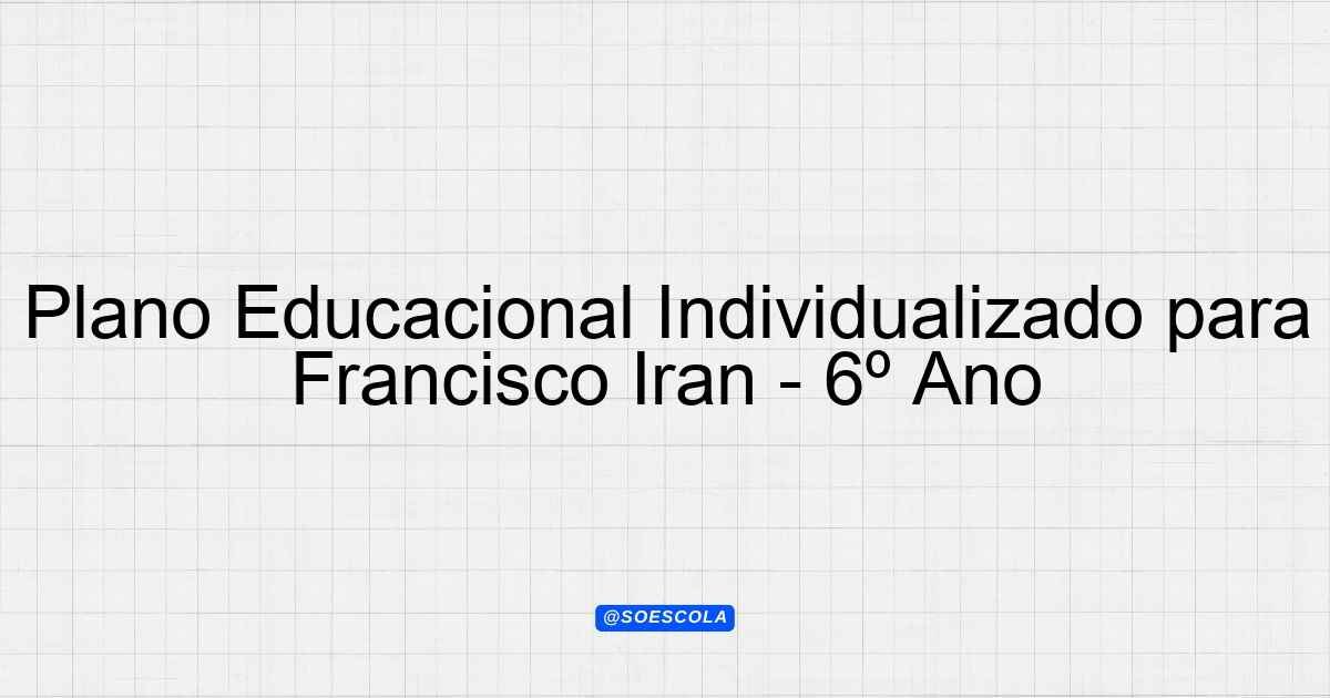 Continue lendoPEI – Plano Educacional Individualizado – Francisco Iran Dias Neto 👤 Aluno: Francisco Iran Dias Neto 🎓 Série/Ano: 6º ano
