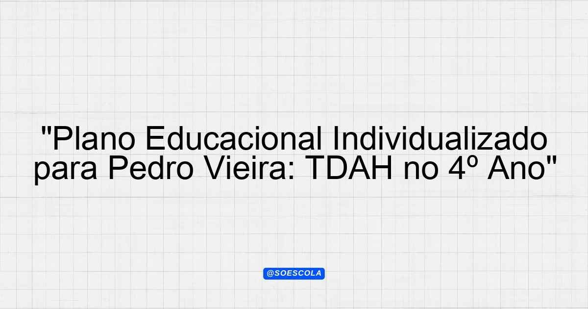 Continue lendoPEI – Plano Educacional Individualizado – Pedro Vieira 👤 Aluno: Pedro Vieira 🎓 Série/Ano: 4º ano EF 📅 Vigência: Bimestral