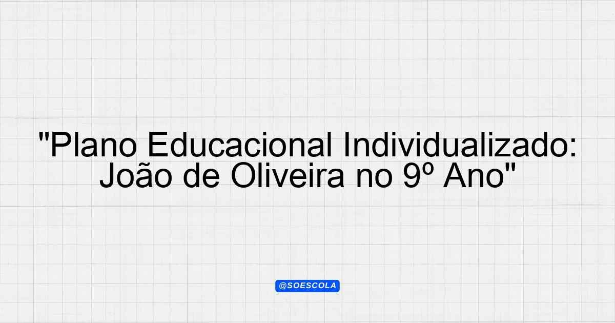 Continue lendoPEI – Plano Educacional Individualizado – João de Oliveira 👤 Aluno: João de Oliveira 🎓 Série/Ano: 9º ano EF 📅