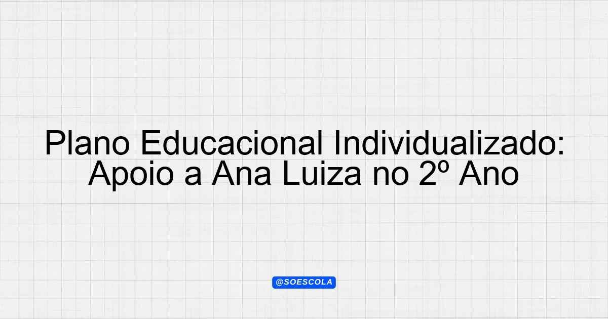 Continue lendoPEI – Plano Educacional Individualizado – Ana Luiza de Sousa Lopes 👤 Aluno: Ana Luiza de Sousa Lopes 🎓 Série/Ano: