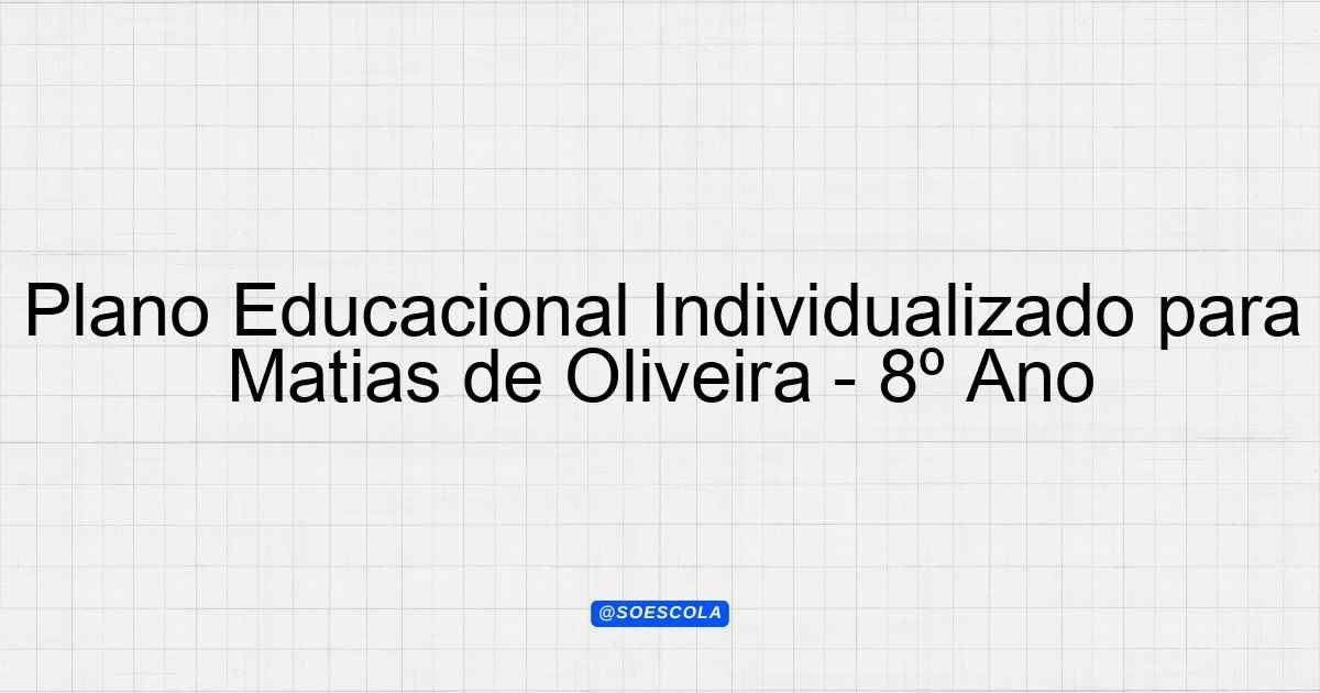 Continue lendoPEI – Plano Educacional Individualizado – Matias de Oliveira 👤 Aluno: Matias de Oliveira 🎓 Série/Ano: 8º ano EF 📅