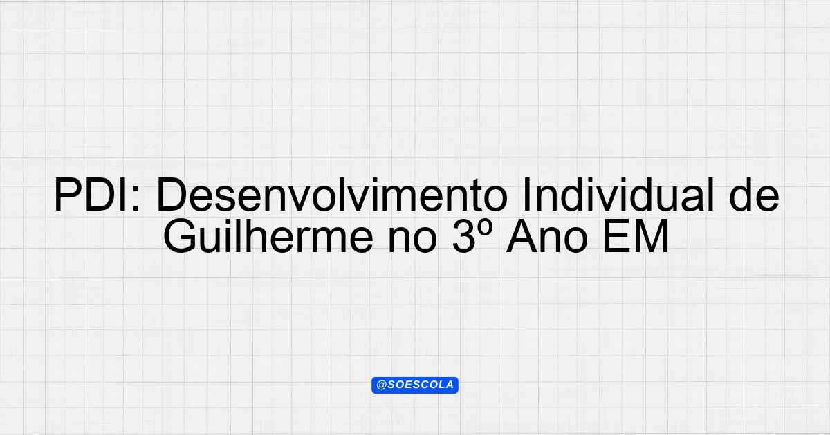 Continue lendoPDI – Plano de Desenvolvimento Individual – guilherme wilhiam de souza 👤 Aluno: guilherme wilhiam de souza 🎓 Série/Ano: 3º