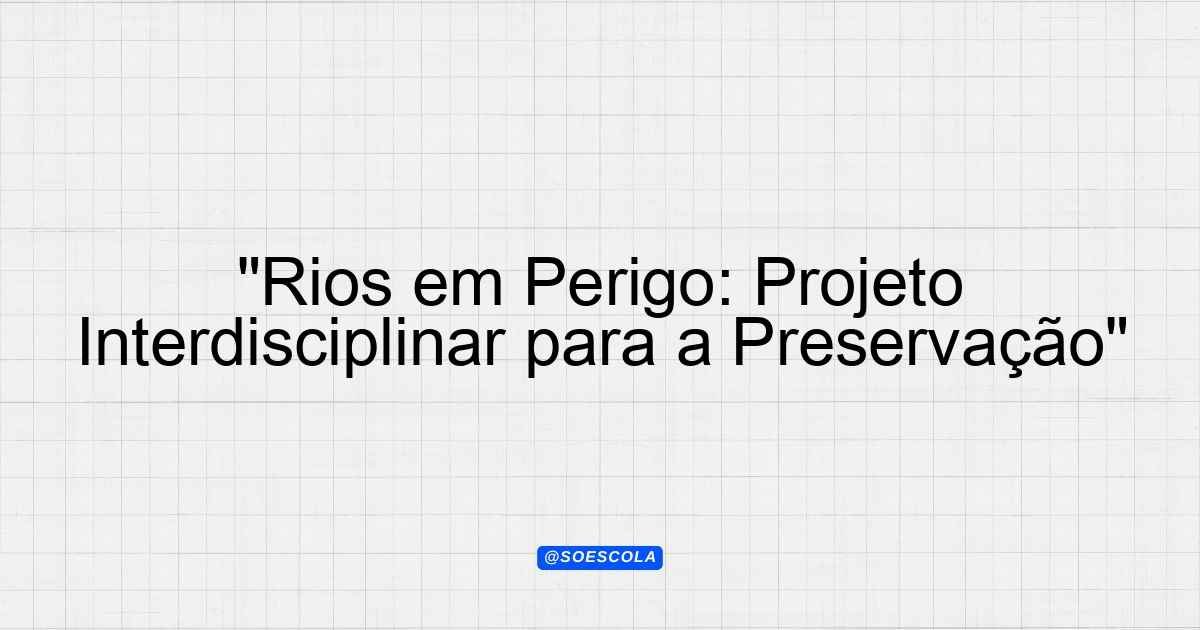 Continue lendoProjeto Interdisciplinar: a morte dos rios 📚 Série/Ano: 1º ano EM ⏱️ Duração: 1 semana 📖 Áreas Integradas: Língua Portuguesa,