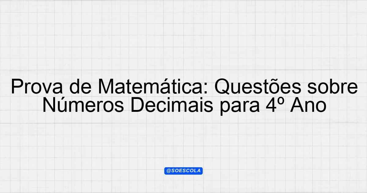 Continue lendoTema: numeros decimaisEtapa/Série: 4º anoDisciplina: MatemáticaQuestões: 20 Prova de Matemática – 4º Ano Tema: Números Decimais Esta prova contém 20