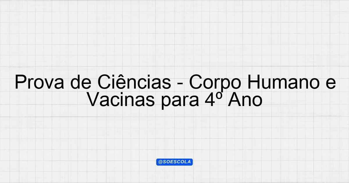 Continue lendoTema: corpo humano sistema cardiovascular sistema respiratorio sistema locomotor as vacinasEtapa/Série: 4º anoDisciplina: CiênciasQuestões: 20 Prova de Ciências – 4º
