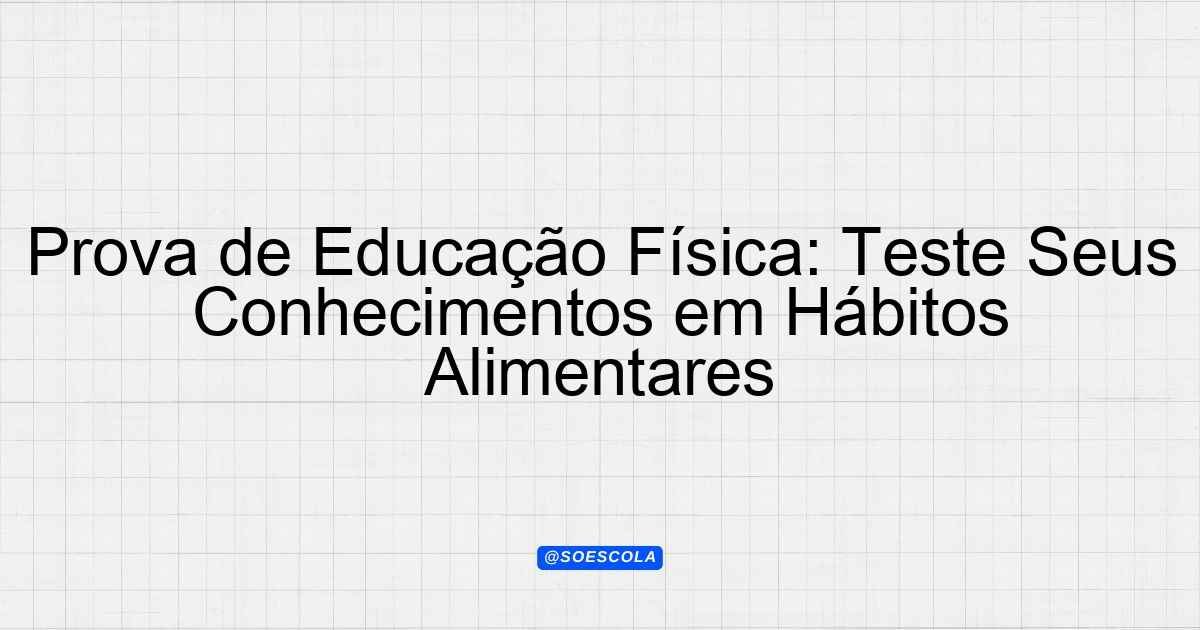 Continue lendoTema: habitos alimentaresEtapa/Série: 9º anoDisciplina: Educação FísicaQuestões: 20 Prova de Educação Física – 9º Ano Tema: Hábitos Alimentares Instruções: Esta