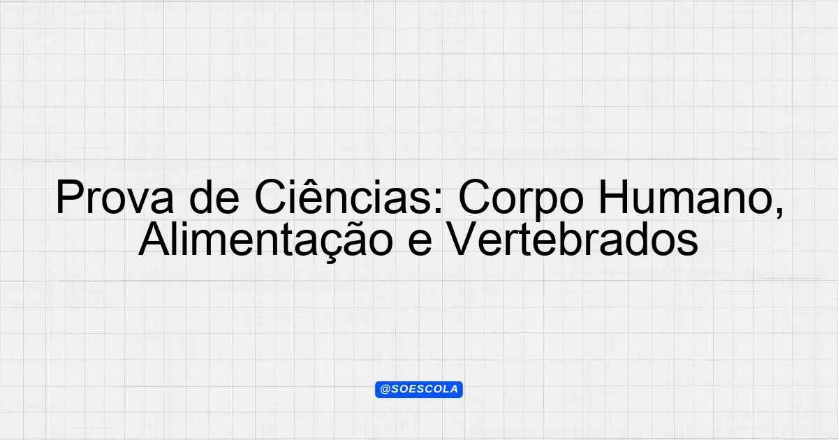 Prova de Ciências: Corpo Humano, Alimentação e Vertebrados