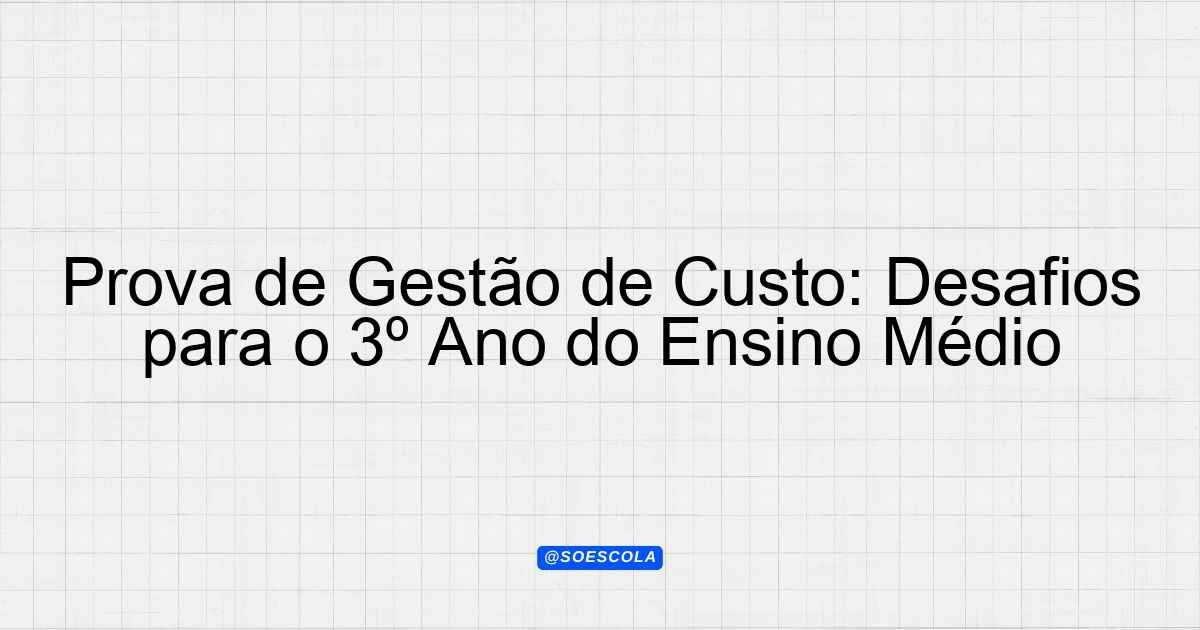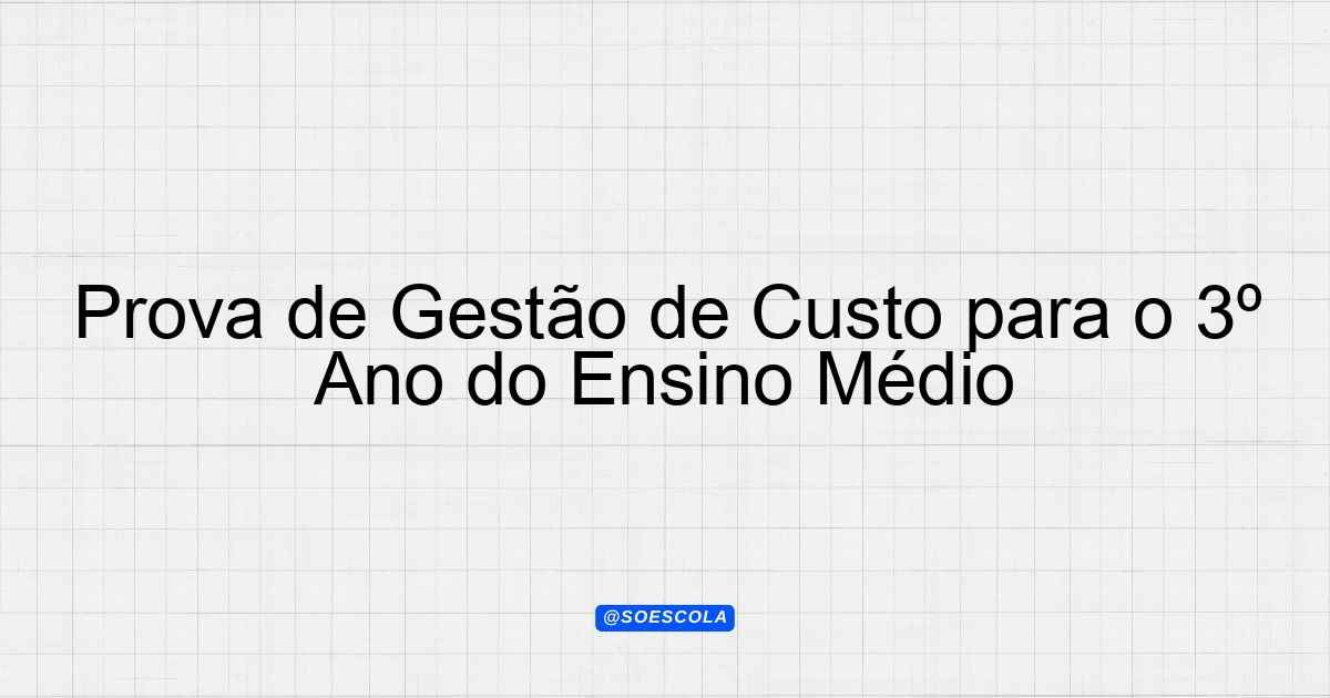 Continue lendoTema: Gestão de custoEtapa/Série: 3º ano – Ensino MédioDisciplina: Formação Técnica e ProfissionalQuestões: 10 Prova de Gestão de Custo – 3º Ano