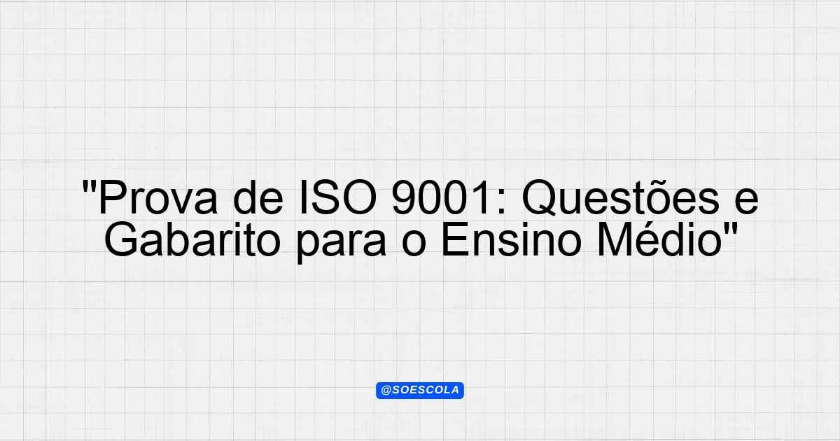 Continue lendoTema: ISO 9001Etapa/Série: 3º ano – Ensino MédioDisciplina: Formação Técnica e ProfissionalQuestões: 10 Prova de Formação Técnica e Profissional – ISO