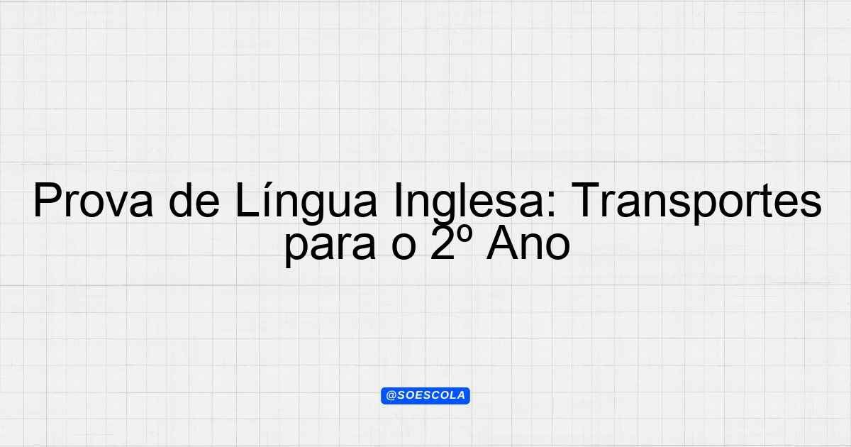 Continue lendoTema: Transportes em inglesEtapa/Série: 2º anoDisciplina: Língua InglesaQuestões: 12 “`html Prova de Inglês – Tema: Transportes 2º Ano Olá, alunos!