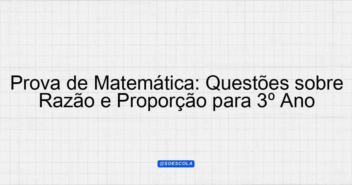 Continue lendoTema: RAZÃO E PROPORÇÃOEtapa/Série: 3º ano – Ensino MédioDisciplina: MatemáticaQuestões: 5 Prova de Matemática: Razão e Proporção Aluno(a): ______________________ Data: