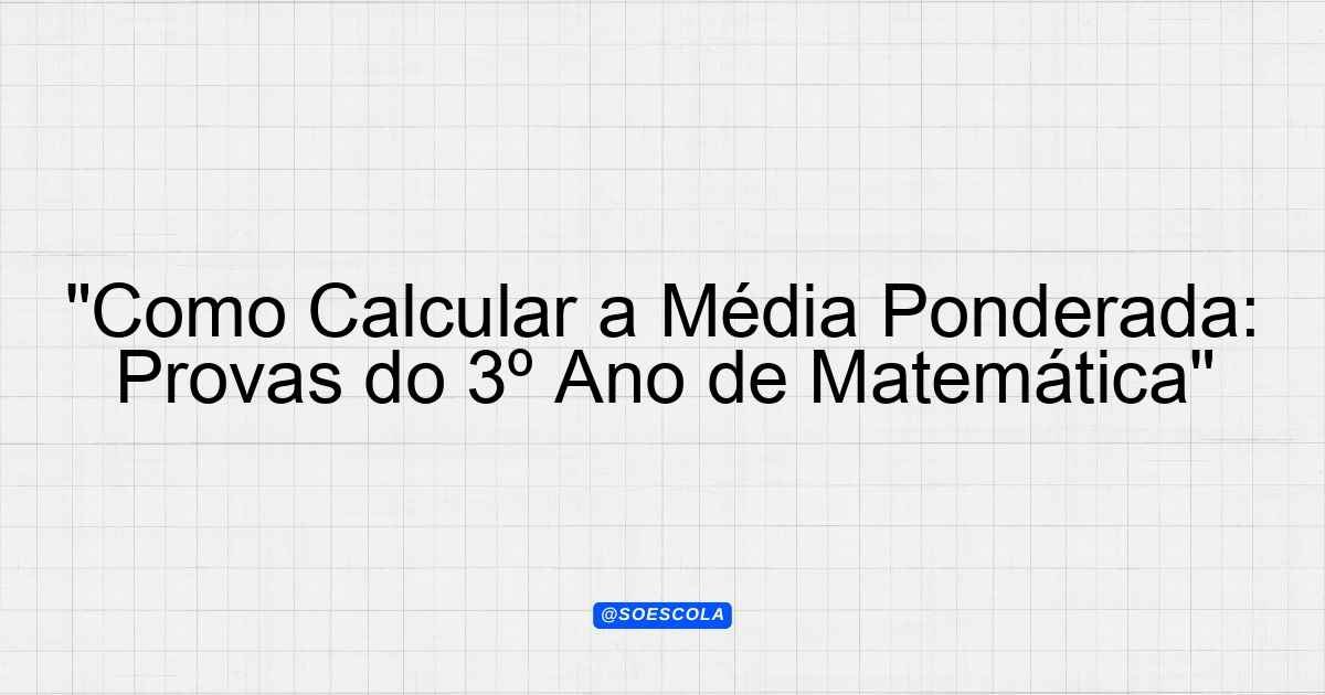 Continue lendoTema: Média ponderadaEtapa/Série: 3º ano – Ensino MédioDisciplina: MatemáticaQuestões: 3 Prova de Matemática – 3º Ano do Ensino Médio Tema: