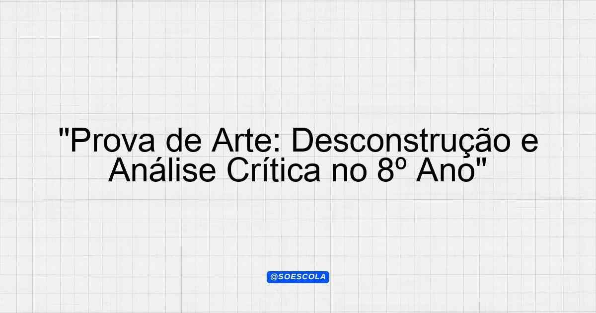 Continue lendoTema: arte e desconstruçãoEtapa/Série: 8º anoDisciplina: ArteQuestões: 10 Prova de Arte: Tema – Arte e Desconstrução Aluno(a): ___________________________ Data: ____/____/____